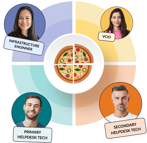 One-pizza team philosophy means your IT services are delivered by a group small enough to be fed with one pizza. This compact team stays dedicated to your environment, your users, and your organization’s evolving needs.